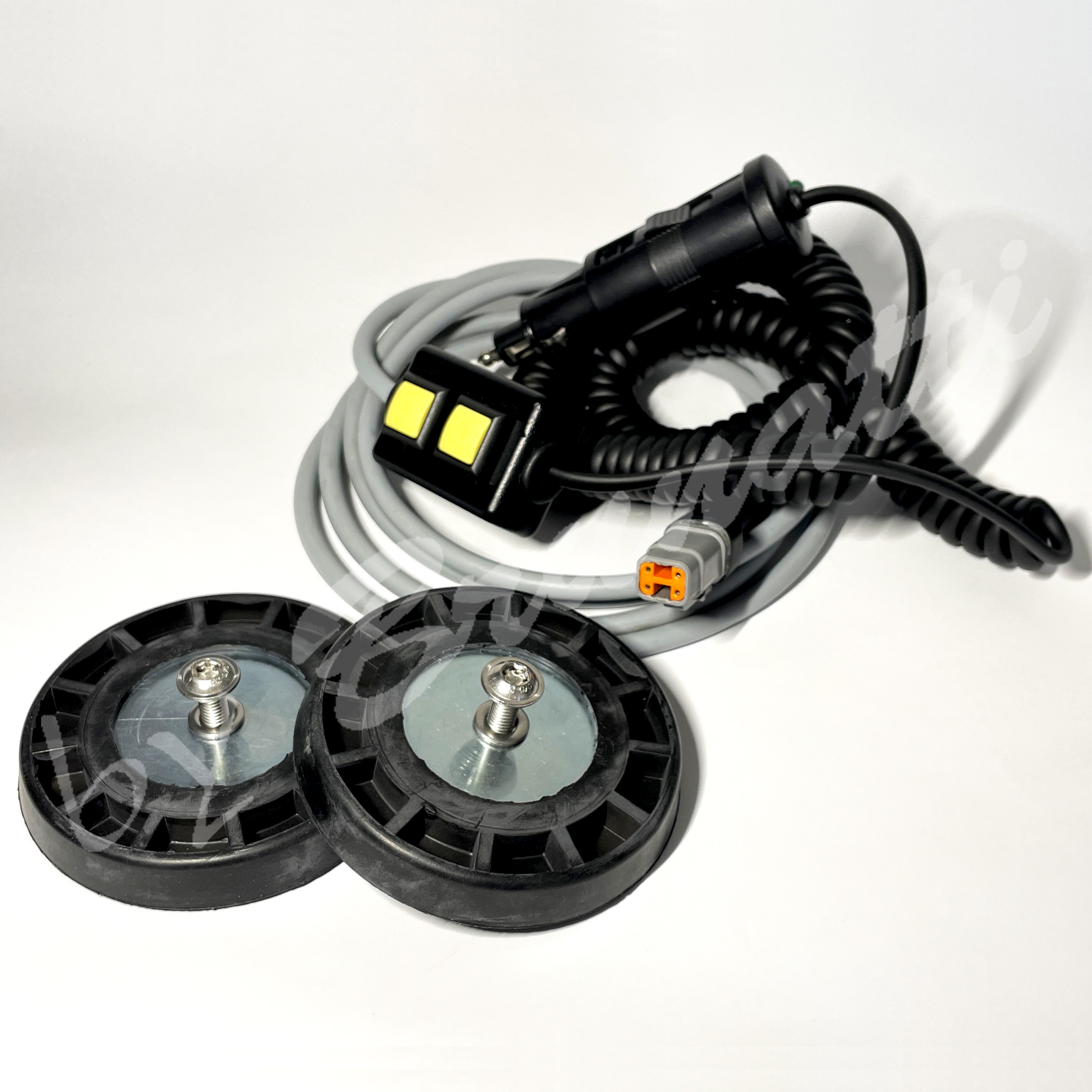 Composto da: due magneti con cover in gomma, prolunga antitaglio, comando e spina integrati.
